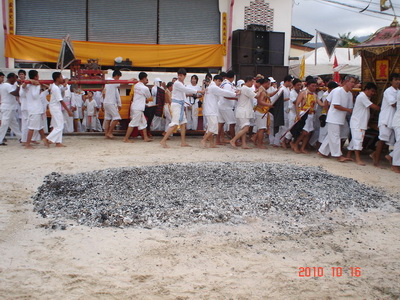 เมื่อถึงเวลา 15.45 น.เจ้าองค์แรกก็เริ่มลุยข้ามกองไฟผ่านพ้นไปต้วยดีไม่มีอะไรเกิดขึ้น ตามด้วยเสียงปรบมือกึกก้อง ของท่านผู้ชมรอบข้าง ทั้งชาวไทย ชาวต่างชาติและสื่อมวลชนต่างๆ ไม่ต่ำจากพันคน