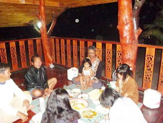 ตกย่ำค่ำ พ่อตา แม่ยาย ญาติๆ ฝ่ายเมียและเพื่อนบ้านของ เจ้าชาง ต่างอุ้ม กะติ๊บ ข้าวเหนียวใบเขื่องๆ รวมทั้ง กับข้าวมาที่บ้าน เจ้าชาง คนล่ะอย่าง สองอย่าง เพื่อเป็นการเลี้ยงต้อนรับผม ผู้ซึ่งเป็น อาคันตุกะต่างแดน ความจริงผมก็ไม่ใช่คนแปลกหน้ามาจากไหน เคยมาที่นี่ ก็หลายครั้ง และหลายคนที่นี่ ก็เคยไปบ้านผม ที่ภูเก็ต แต่ธรรมเนียมปฏิบัติ การต้อนรับคนจากต่างถิ่น และความมีน้ำใจของตนที่นี่ ก็ทำให้ผู้มาเยือนประทับใจเสมอ